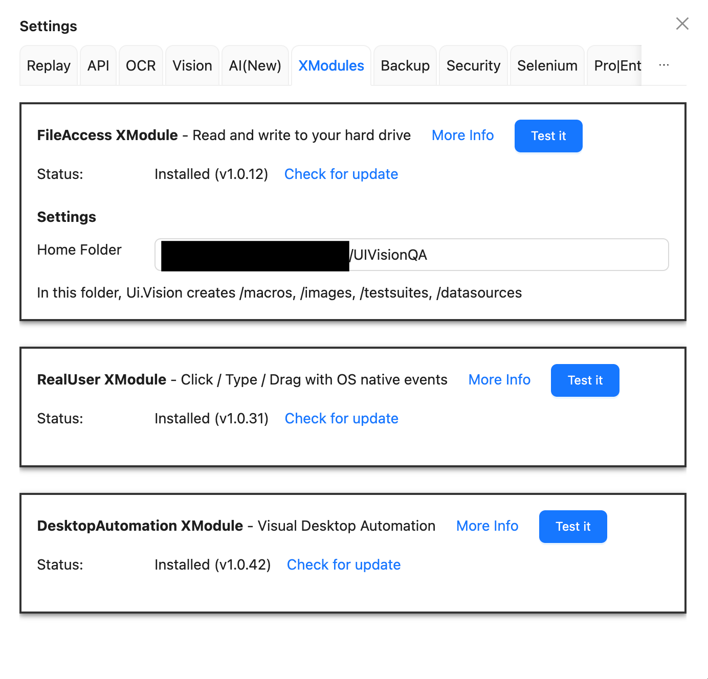 Workaround: Luckily almost everything works fine without this specific xmodule. As the name suggests, it is responsible for helping the user taking desktop screenshots for the use with XClick, XMove etc commands. So if you plan to use Ui.Vision for web automation, you can safely ignore the issue, as this xmodule is not needed for web automation at all.