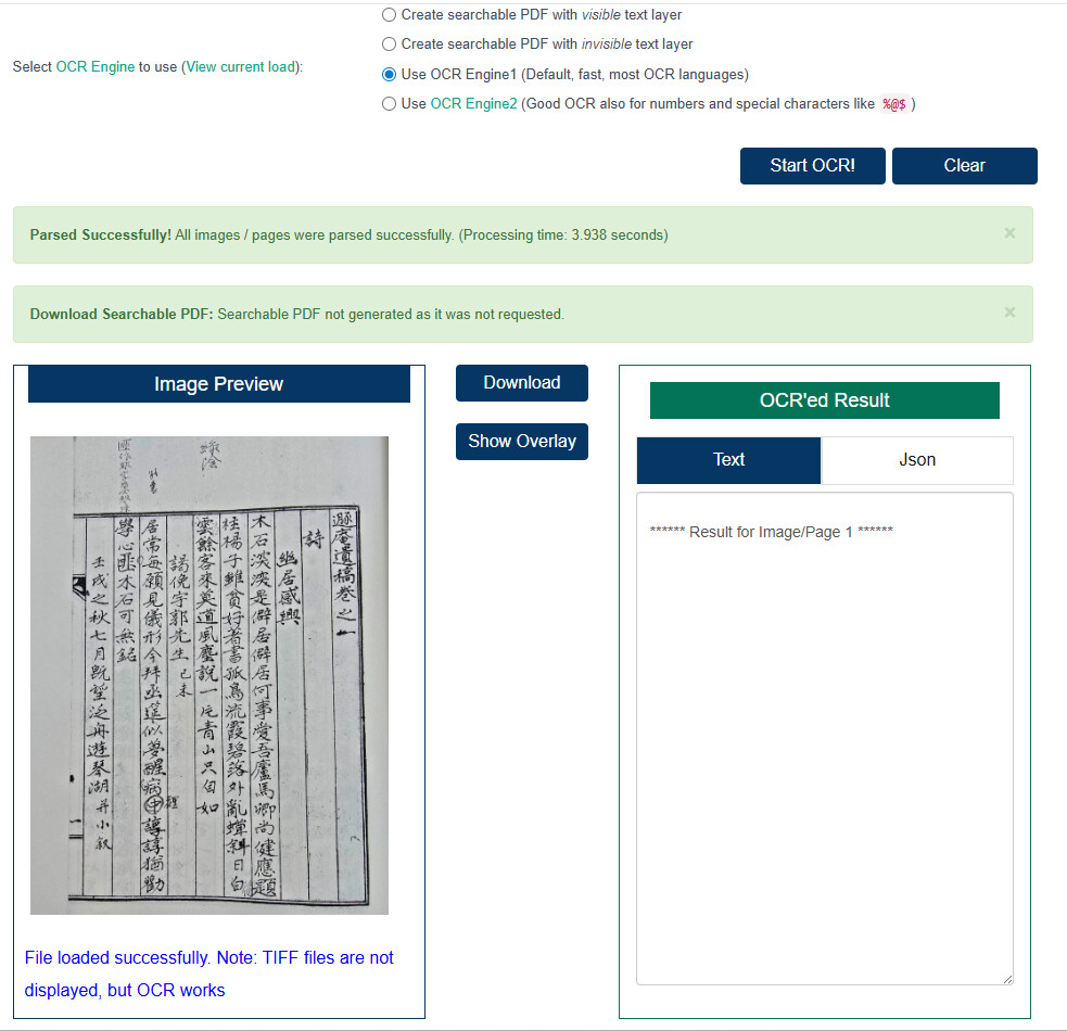 Chinese. I uploaded the image and OCR started, but no results, with only